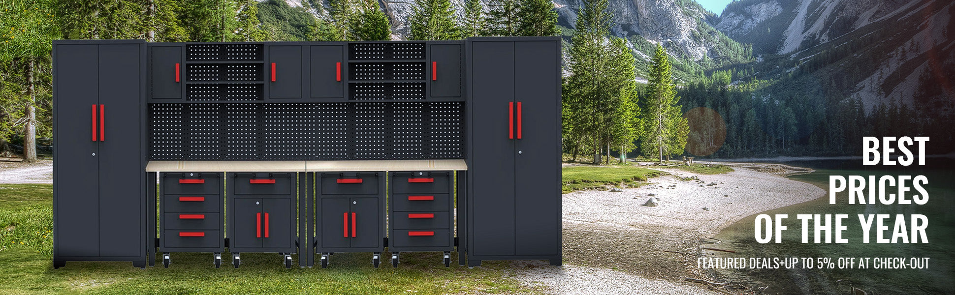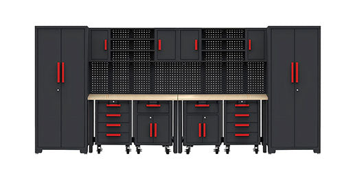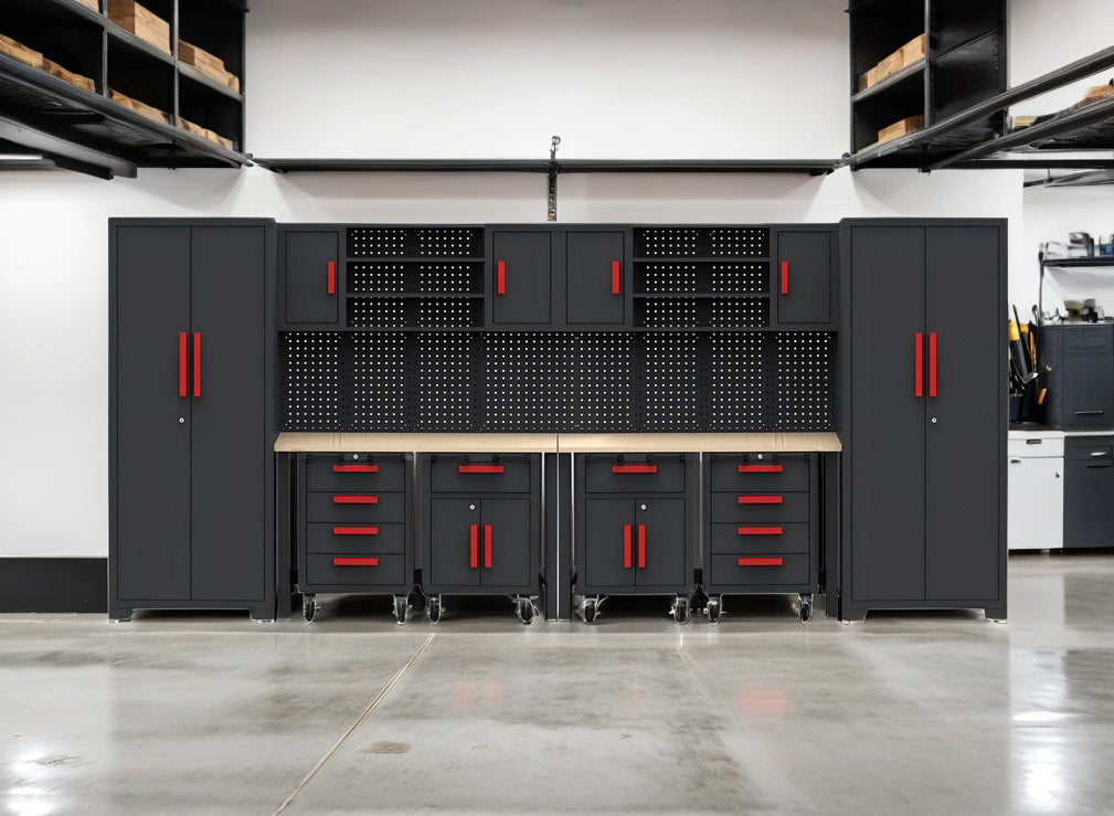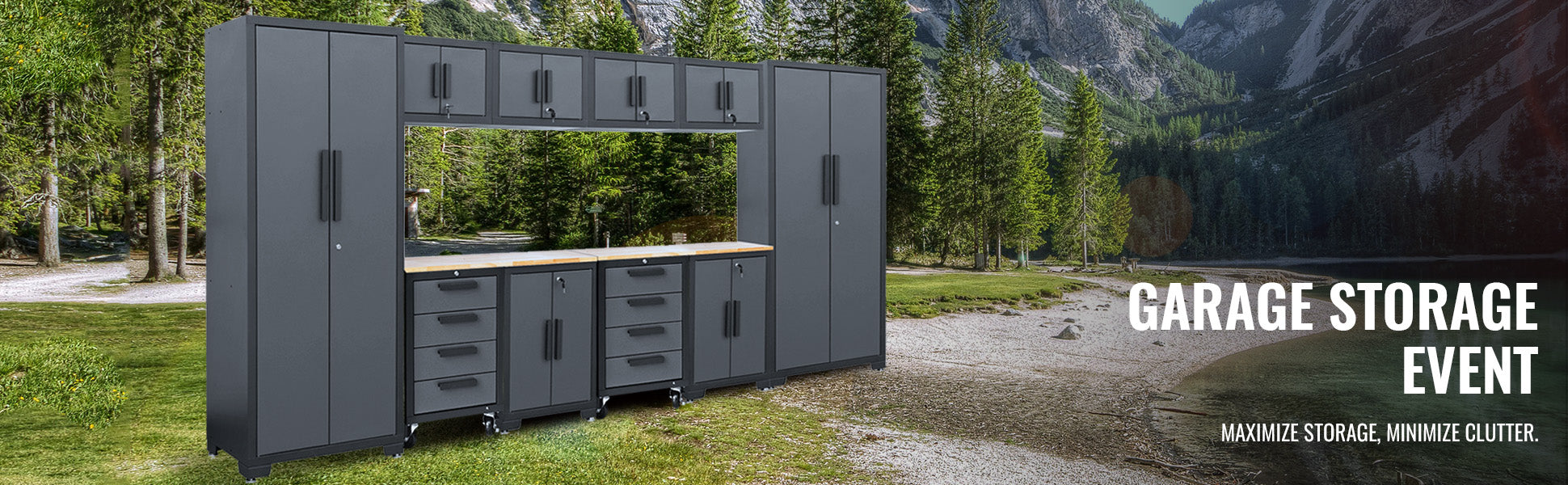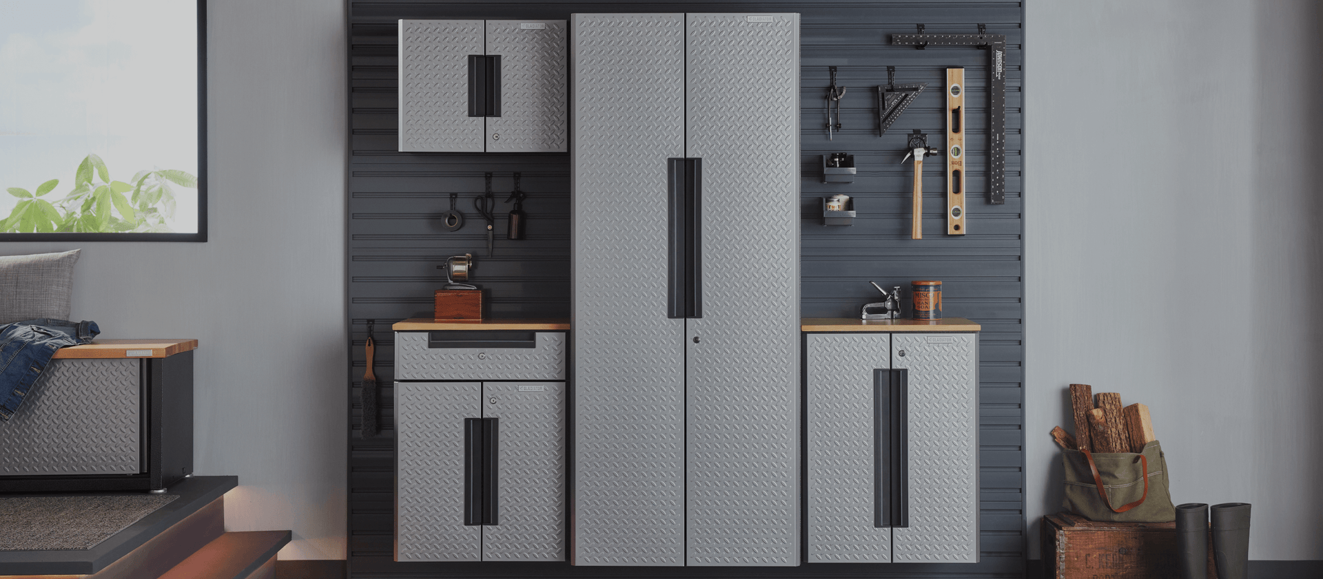 A complete storage solution available in 12 garage cabinet sets to maximize your space.