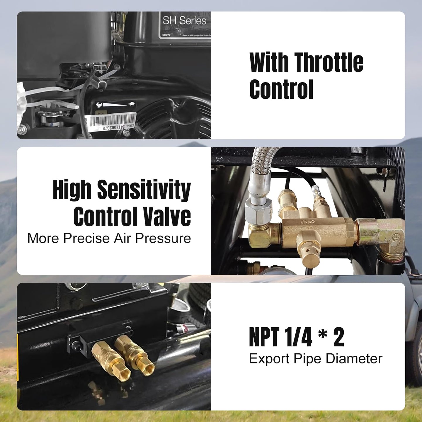 - ✅【High-Efficiency Cast Iron Cylinders】 Maintains rigid tolerances for high efficiency,reduces interstage temperature for max performance & durability, perfect for service truck applications (battery & cable not included)