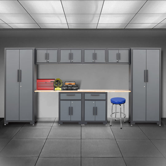 No reviewsStandard Series 5 Piece Garage Cabinet Set Key Features Aluminum Built to Last This garage storage cabinet is equipped with a 1" thick wood worktop (Size:47.24"L×16.85"W×1"H) which is convenient to operate most tools High quality metal Loading...Sale price $ 1,399.00Regular price $ 1,649.00Sale price $ 1,399.00Regular price $ 1,649.00