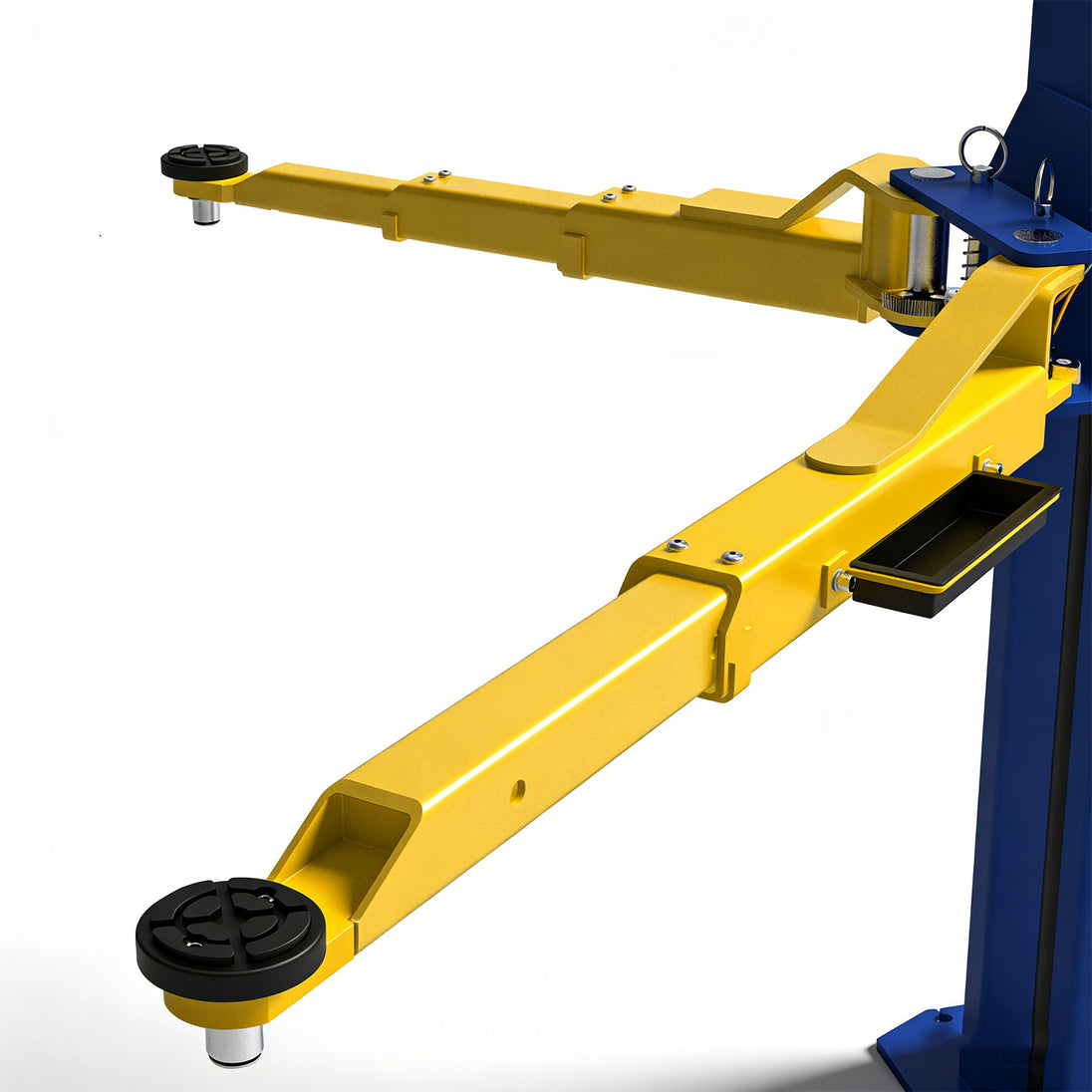 Features versatile symmetrical/asymmetrical arms with adjustable pads and a compact two-post footprint, optimizing garage space while adapting to diverse vehicle lift points.