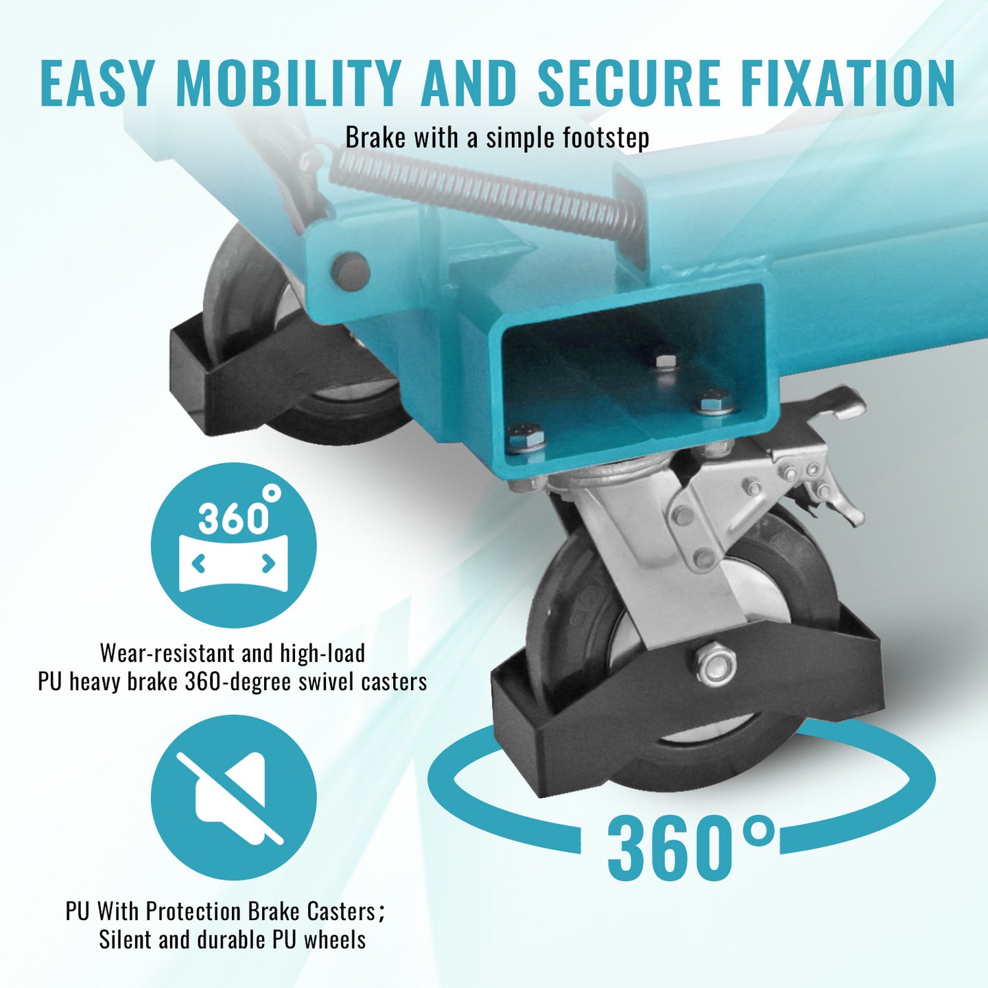 - PU with Protection Brake Casters: Electric E-Vehicle Battery Lift Table is composed of 2 PU straight wheels and 2 PU casters with brakes, which make the steering flexible, quiet, and reliable