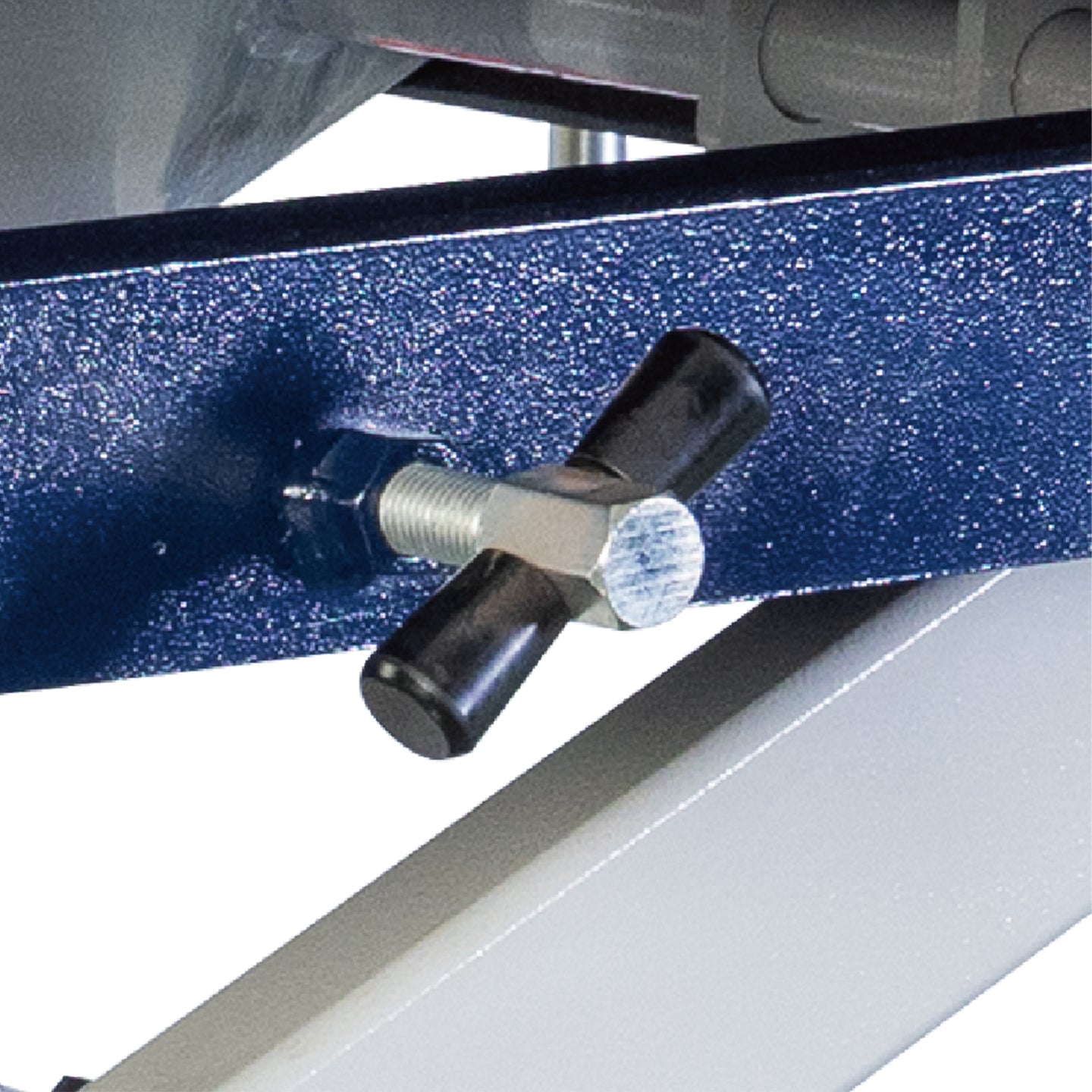 Integrated manual tilt screws provide ±2 inches of platform angle adjustment for uneven floor compensation and component installation.