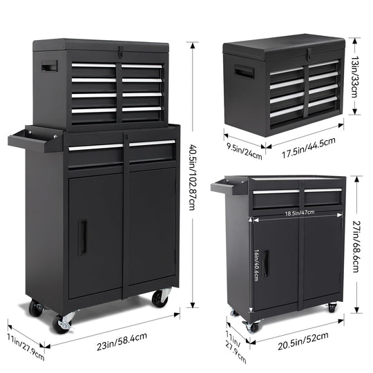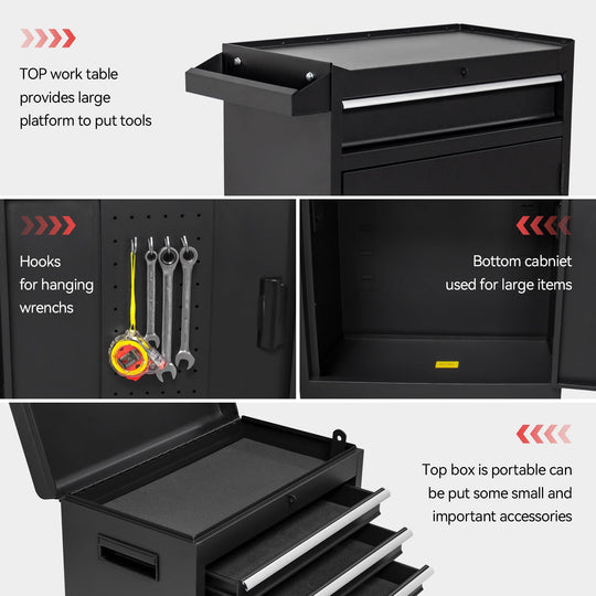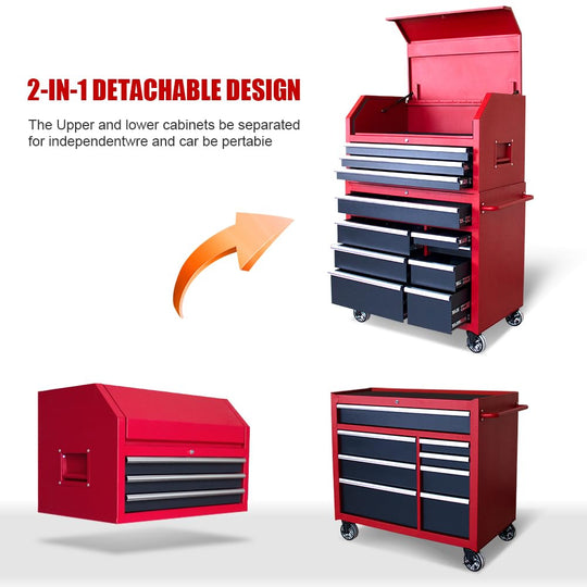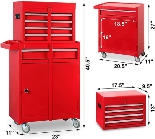 Rolling Garage Workshop Tool Organizer Red and Black Measures 19.9" L x 11" W x 35.8" H and the tool chest can detach for a portable tool box Top tool chest features three pull out drawers...Sale price $ 147.90Regular price $ 259.99Sale price $ 147.90Regular price $ 259.99