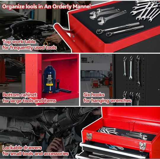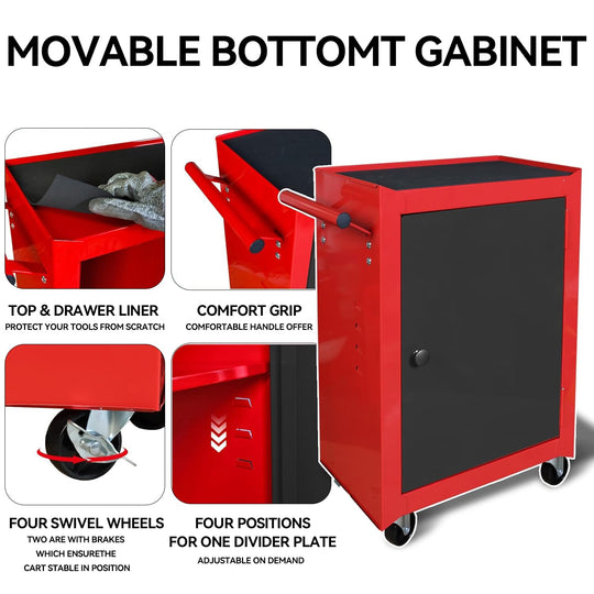 Red and Black Rolling Garage Workshop Tool Organizer