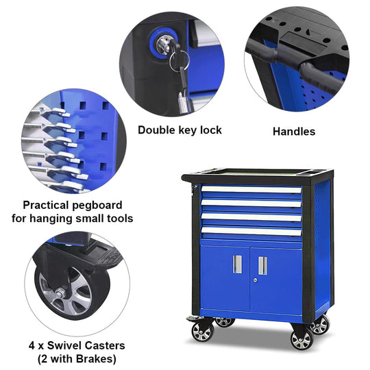 Rolling Garage Workshop Tool Organizer 4 Drawer Chest
