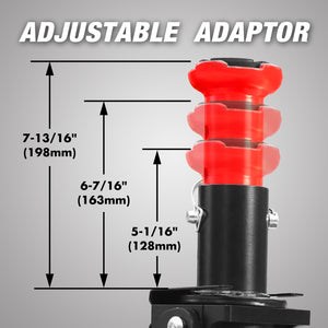 - The lifting range of professional big wheel off-road jack without adapters is 5.98"-20.87". Lifting range with SUV adapter is 8.98"-23.86"