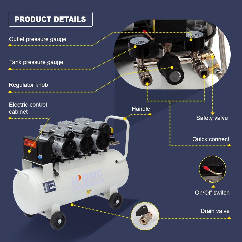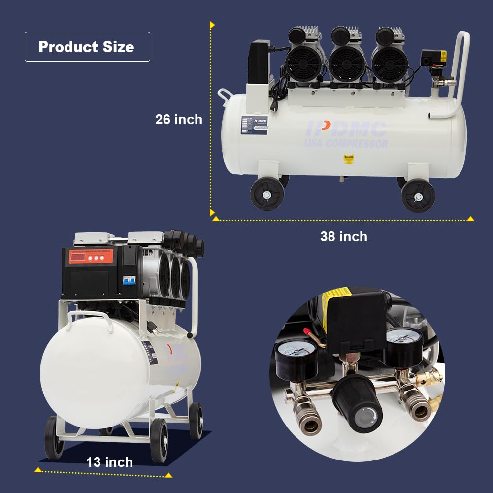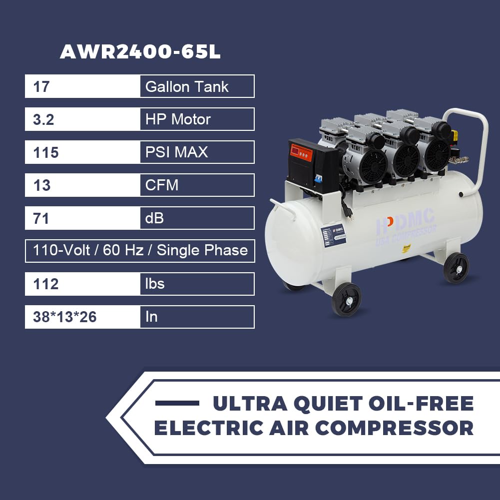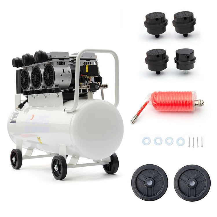 - Ultra Quiet Airflow Operation: This silent design air compressor operates at only 70 decibels, making it the best air compressor for working in residential or commercial areas. The low noise level not only makes the air compressor suitable for a variety of scenarios without disturbing others, but will also help to build a quiet working environment so that your work efficiency can be improved