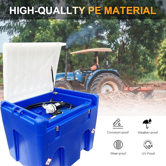 - Highly Robust Construction: Weight: 85.06 LBS, Color: Blue & White, The DEF Transfer Tank Made of durable polyethylene material. These high-quality materials ensure long service life