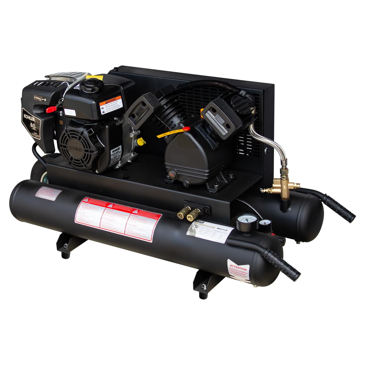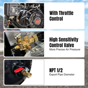 - Easy and Safe Operation: This gas-powered wheelbarrow compressor is durably designed with a cast iron frame for reliable, long-lasting use. An automatic start/stop pressure switch control with manual on/off lever offers easy operation, while the high-efficiency finger valves are easy to operate and maintain. Also can mounts in truck or service vehicle
