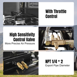 - ASME Tank: Gas powered air compressor with a 30-gallon ASME (American Society of Mechanical Engineers) tank can provide a longer duration of stable air supply. The ASME certification ensures that the tank meets safety and quality standards. ASME tank provides a reserve of compressed air, resulting in a more stable air supply over an extended period. The compressor can build up a substantial amount of compressed air in the tank, allowing it to meet the demand for air without needing to run continuously