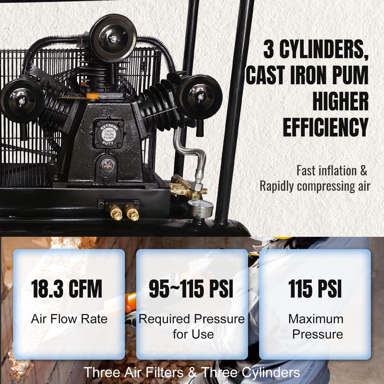 - ✅【High-Efficiency Cast Iron Cylinders】 Maintains rigid tolerances for high efficiency,reduces interstage temperature for max performance & durability, perfect for service truck applications (battery & cable not included)