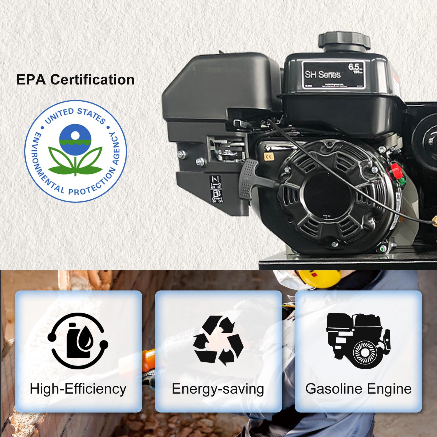 - Specification: Power: 6.5HP; Tank: 9 Gal; Max Working Pressure: 125PSI; Air Flow Rate: 12CFM; Speed: 880 rpm; Output Pipe Diameter: NPT 1/4'' x 2; Type of Driven: Gasoline; EPA Certificate NO.: RKHXS.1961GA-036