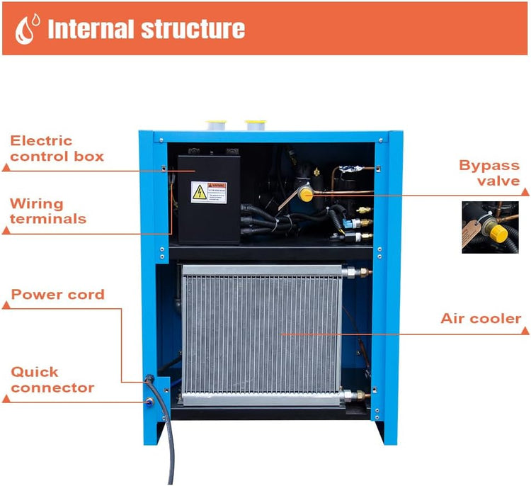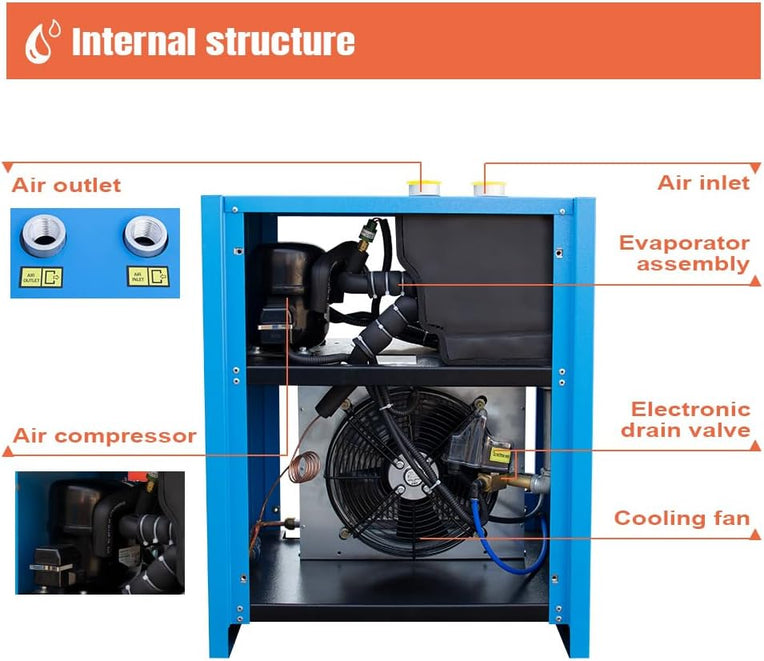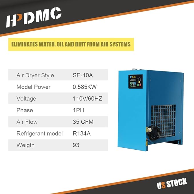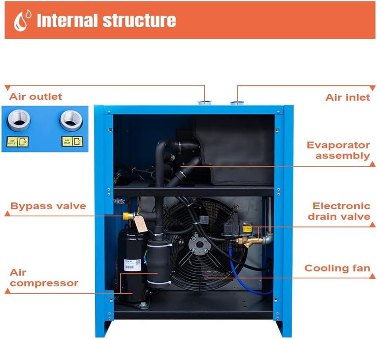 - Premium Industrial 35 CFM Refrigerated Air Dryer: Refrigerant compressor brings the gaseous refrigerant to a high pressure and a high temperature, its the best suited for small systems with fairly constant loads