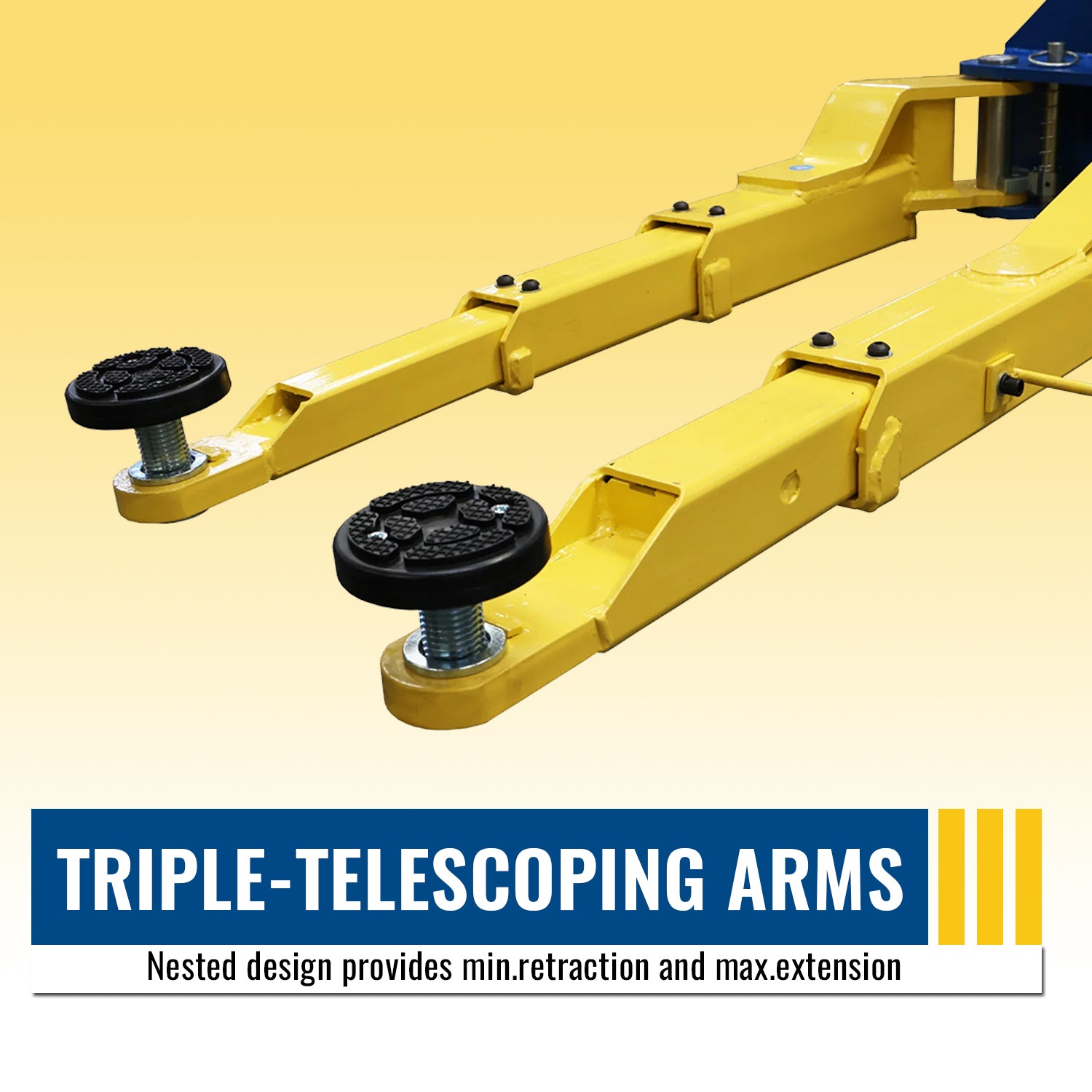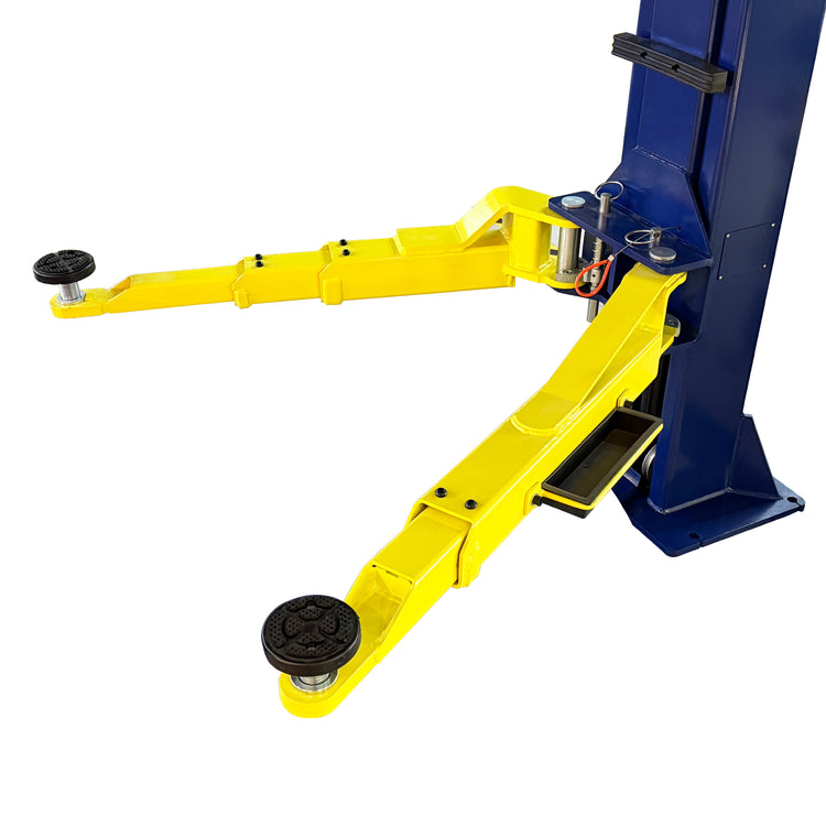 Features versatile symmetrical/asymmetrical arms with adjustable pads and a compact two-post footprint, optimizing garage space while adapting to diverse vehicle lift points.