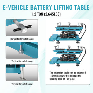 - Adjustable Electric Lifting Platform: Lifting range 25.59"-72.44"; The platform of electric lifting platform can be moved ±1.57" in four directions by turning off the locking mechanism on both sides when disassembling or assembling the battery; Height of insulated rubber pad can be adjusted freely in three stages