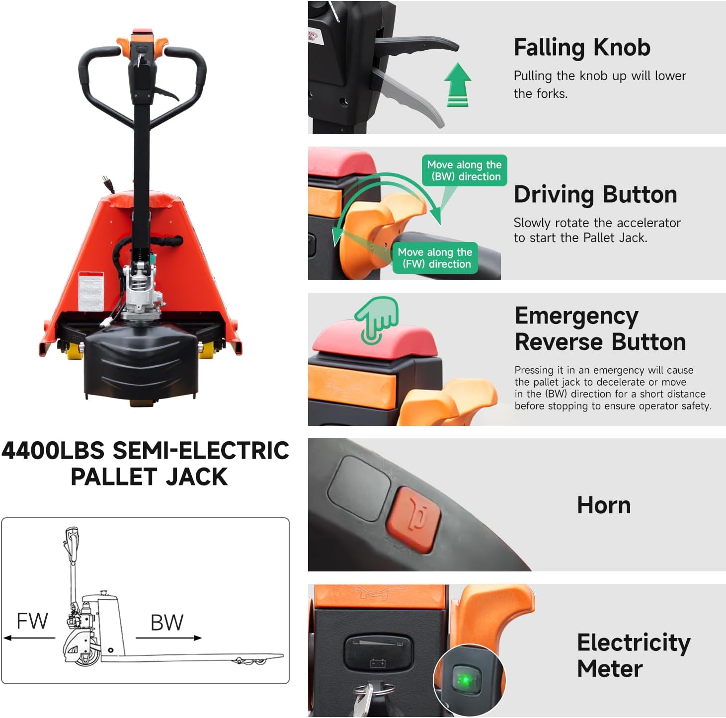 - Prevent Operator From Harm: Emergency button is the standard configuration of the truck and it protects the safety of goods and personality. With foot pedal brake also for safety and ramp usage. Equip with high-density steel wire protection net, provide excellent protection effect.