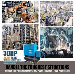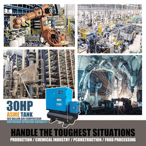 - Superior Compressed Air Performance: Oil injected screw pump provides reliable, quiet power, runs without the vibration & noise of piston compressors, reduced sound fatigue in work area installations. Ideal for most applications in 30HP/125CFM at 125 PSI, design in High Efficiency & Heavy-Duty General Air Filter protects key components and enhances compressor air quality also helps remove coalesced liquids & lubricants